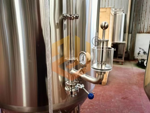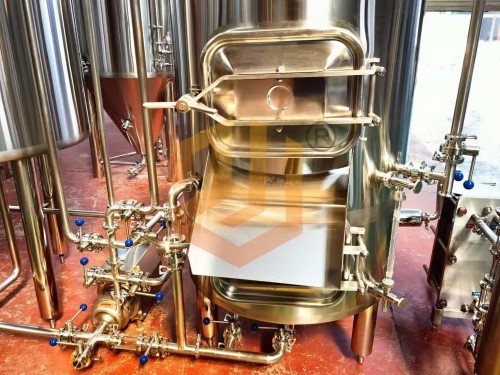 精釀啤酒設(shè)備使用的過(guò)濾槽與旋沉罐:采用上下兩層的設(shè)計(jì)方式,整體占地面積小,過(guò)濾槽采用銑制篩板,頂部采用異型人孔設(shè)計(jì),側(cè)面配有出糟口,方形人孔門(mén)設(shè)計(jì)更有利于啤酒麥糟的清理工作,同時(shí)還配有出糟板。內(nèi)部配有耕刀裝置,用于疏松麥糟層以及出糟使用。